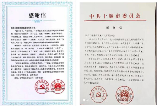 According to incomplete statistics, departments and subsidiaries of the HICC donated more than 5 million RMB to Wuhan, Shiyan, Huanggang, Yichang, Xiangyang, Xiaogan, Jingzhou, Enshi and other places. Among them, the infrastructure department provided materials with a value of more than 200,000 RMB to Yingshan, Luxi, Hanchuan and other places; Investment company donated 100,000 RMB to Qianjiang city and Dangyang city; HIETC has taken advantage of domestic and foreign resources to raise 22500 masks and 350 sets of protective clothing for cabin hospitals and isolation areas. Leaders of HIETC contacted Myanmar Mandalay Chamber of Commerce in China to donate 50,000 masks to Honghu, and 10,000 pairs of medical gloves, as well as more than 5,000 pounds of fresh vegetables to the community, with total value about 300,000 RMB. International Engineering company took advantages of local projects to donate a value of more than 1.5 million RMB materials and ambulances to Jingzhou, Yichang, Enshi and other places. And medical supplies; the poverty alleviation team of HICC in Zhushan County has exerted all energy to collected over 6,000 disposable medical masks, more than 200 N90 masks, 84 bottles of disinfectant solutions and 100 kg of alcohol for Yingfeng village.