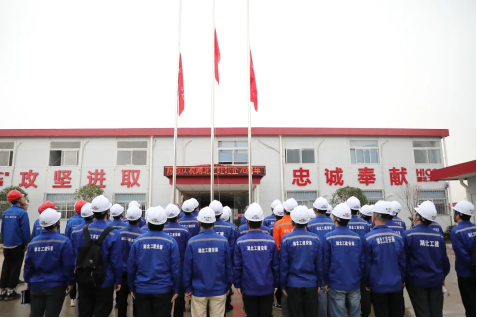 The installation company held a flag-raising ceremony at the site of the electromechanical industrial park project.