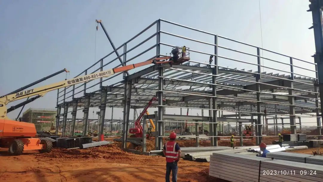 “双节期间,我们工人没有休息,一直持续施工,目前主体结构已经完成83%,主干道的施工完成了50%。现在看到的作业环节是屋面檩条安装,计划在10月15日进行屋面瓦施工,预计10月30日完成主体结构封顶。”保税物流中心(B型)项目成人视频大全 负责人廖志刚介绍。